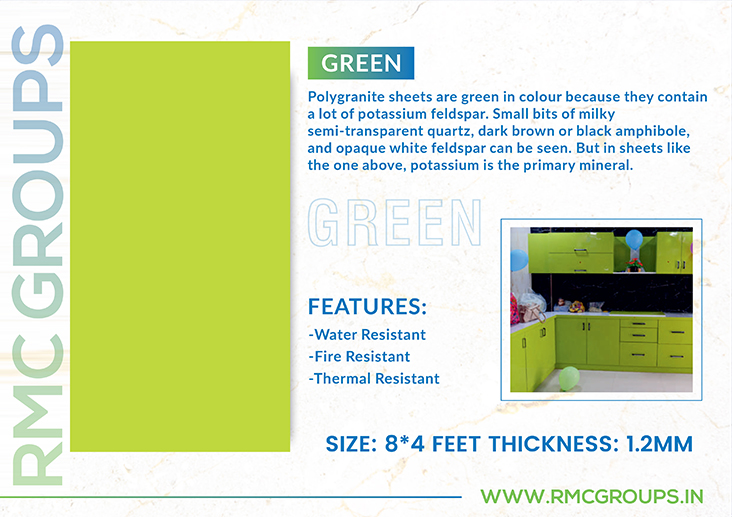 POLYGRANITE 1.2MM become extremely popular among homeowners, designers, and architects alike, different type of laminates is widely used for interior in contemporary homes. The popularity of POLYGRANITE 1.2MM comes from the knowledge that these are incredibly durable, strong, have wide applications, come in many POLYGRANITE 1.2MM designs, and are reasonably priced Plain color sheets are widely used in modular kitchen and are becoming very popular among homeowners, who are now looking for more creative ways to design their homes. especially famous for use in kids’ rooms – walls, play areas, study tables, wardrobes, chairs, and basically on whatever you want them on. They are not only highly decorative but are moisture-resistant, abrasion, fire, and scratch resistant as well.